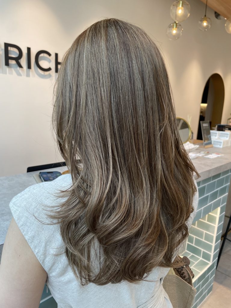 白髪ぼかしは、細かいハイライトや透明感カラーを使って、白髪を自然に馴染ませる方法。