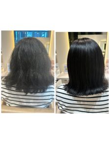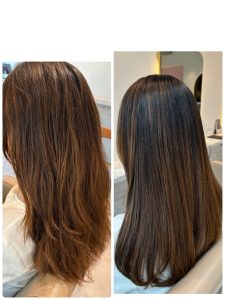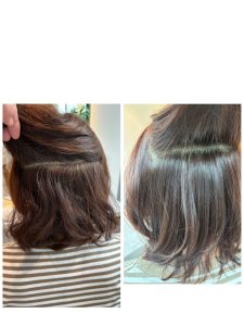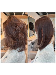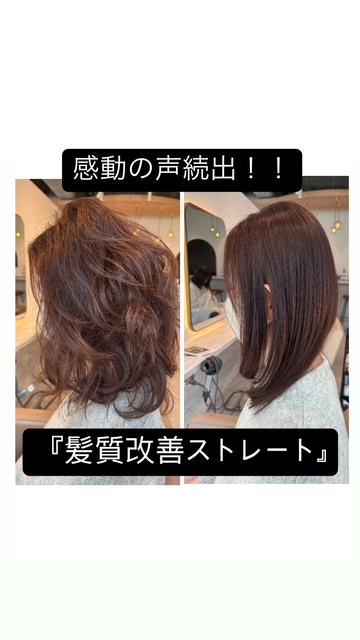 まっすぐすぎない自然な仕上がりで、今までにない柔らかいストレートです。ダメージを最小限に抑えながら、髪の内側から整える”髪質改善ストレート”。従来の縮毛矯正とは異なり、酸性域で行うことで柔らかく自然な質感になります。繰り返しの施術でも髪が固くなりにくく、うねりや広がりを扱いやすくコントロールできます。またカラーとの同時施術も可能ですし、ハイライトデザインをやっている方にも可能なストレートです。